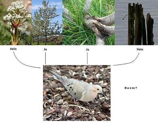Gedankliche Konzepte Forscher der Harvard University versuchten einen Einblick in das Weltverständnis von Tauben zu gewinnen und stellten deshalb Tauben die Aufgabe, Dinge zu kategorisieren. Dazu zeigten sie den Tauben Fotografien und die Tauben betätigten mit ihrem Schnabel verschiedene Schalttasten, um gegen eine Belohnung mitzuteilen, welche Art von Referenzobjekt sie auf einem Foto entdeckten. Würden die Tauben sich überhaupt konzentrieren können und gezielt Details aus den Bildinformationen herausselektieren können? Was wissen Tauben über die Natur der Dinge? Eine Testreihe umfasste jeweils ca. 1500 Fotos, welche die Tauben betrachteten und einordneten. Sie sollten z.B. angeben, ob sich ihrer Meinung nach Wasser oder ein Baum auf einem Foto befindet. Um dies beantworten zu können, mussten die Vögel sich bewusst sein, was sie sahen, und im Kopf behalten, was von ihnen gefragt wurde. Dabei wurden ihnen auch schwierige und uneindeutige Fotos gezeigt, welche Verwechslungsmöglichkeiten beinhalteten oder den gesuchten Gegenstand nur verborgen oder größtenteils verdeckt zeigten. Die Tauben meisterten die Aufgabe sehr gut. Genauso treffsicher wussten sie, ob eine bestimmte Person auf einem Foto zu sehen ist oder nicht, denn sie konnten jemanden Bekanntes von anderen Personen unterscheiden. Dies erfordert eine ganze Reihe von Fähigkeiten: Die Tauben erinnerten sich sowohl an die speziellen Merkmale der Person, als auch an ihre eigene Aufgabe, bei der sie zielorientiert vergleichen und unterscheiden mussten, um die Aufgabe zu lösen, um eine Belohnung zu erhalten, d.h., die Tauben waren in der Gegenwart motiviert, weil sie in die Zukunft denken konnten. Die Auswahl der Fotografien zielte darauf, zu zeigen, anhand welcher Konzepte die Tauben unterscheiden. Das Ergebnis war, dass die Tauben eine sehr komplexe Vorstellung von den Dingen besitzen und man ihre Beurteilungen nicht auf einzelne Eigenschaften einschränken kann. Für Tauben muss beispielsweise nicht alles, was grün ist und Blätter hat, ein Baum sein, und sie erkennen einen Baum auch als Baum, wenn er nicht grün ist und keine Blätter hat. Genausowenig hängt das Urteil einer Taube davon ab, ob eine vertikale Ausrichtung vorhanden ist oder ob Äste vorhanden sind. Eine Sellerie-Stange, die wie ein Baum fotografiert wird, hält keine Taube für einen Baum. Wenn dagegen auf einem Foto von einem Haus am oberen Bildrand ein paar Äste hervorluken, weiß die Taube, dass das auf einen (nicht sichtbaren!) Baum hinweist. Bemerkenswert ist auch, dass die Tauben genau die Aufgaben leicht fanden, welche auch Menschen leicht fanden. Genauso fiel den Vögeln die Unterscheidung in den selben Fällen schwer, in denen auch den menschlichen Probanden die Unterscheidung schwer fiel. Das deutet daraufhin, dass die mentale Konzeptualisierung bei Menschen und Tauben sehr ähnlich funktioniert. Genau wie für den Menschen gibt es für die Tauben eindeutige Fälle, die besonders viele entscheidende Merkmale vereinen, oder welche der prototypischen mentalen Repräsentation besonders nahe kommen und uneindeutige Fälle, bei denen die Merkmale nur undeutlich zu erkennen sind oder es sich um fließende Übergänge zwischen Kategorien handelt wie z.B. zwischen Busch und Baum (fuzzy categories). In einer späteren Studie von der University of Iowa wurde überprüft, ob die Tauben vielleicht nur natürliche Dinge von hoher Relevanz für ihr tägliches Überleben konzeptualisieren können. Doch es stellte sich heraus, dass die Tauben in ihren Fähigkeiten nicht auf bestimmte Objekte eingeschränkt sind. Die Tauben waren in den neuen Testreihen genauso kompetent darin, Menschen, Blumen, Autos und Stühle zu identifizieren. Wiederum andere Tests, die sich nur mit Farben und Formen beschäftigten, belegten, dass Tauben auch mit abstrakten Kategorien bewusst umgehen können. Diese mentale, semantische Kompetenz könnte eine der Wirbeltier-Grundlagen für die Sprachproduktion bilden. Der Graupapagei Alex hat gezeigt, dass er auf seine mentalen Konzepte von Objekten, Farben, Form, Anzahl etc. mit sprachlichen Äußerungen Bezug nehmen kann. (Vgl. den Menüpunkt >Kommunikation) Vgl. "Natural Concepts in Pigeons", Journal of Experimental Psychology: Animal Behavior Processes, 1976. "The conceptual abilities of pigeons", American Scientist 83: S. 246-55, 1995. Eine Studie am C. und O. Vogt Institut für Hirnforschung (Heinrich-Heine-Universität Düsseldorf) hat auch für Hühner die Kategorisierung und Unterscheidungsfähigkeit von geometrischen Figuren nachgewiesen. Vgl. "Categorization of multidimensional geometrical figures by chickens", Animal Cognition, Mai 2001 |